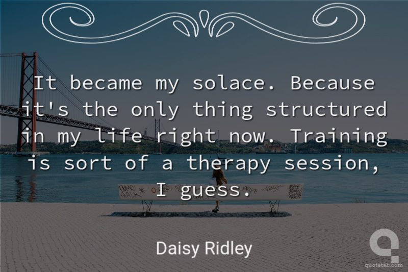 It became my solace. Because it's the only thing structured in my life right now. Training is sort of a therapy session, I guess.
