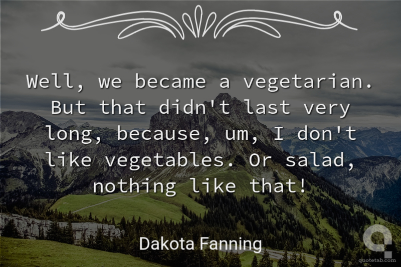 Well, we became a vegetarian. But that didn't last very long, because, um, I don't like vegetables. Or salad, nothing like that!