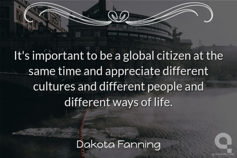 It's important to be a global citizen at the same time and appreciate different cultures and different people and different ways of life.
