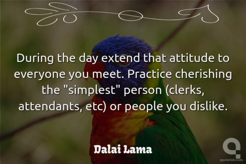 During the day extend that attitude to everyone you meet. Practice cherishing the "simplest" person (clerks, attendants, etc) or people you dislike.