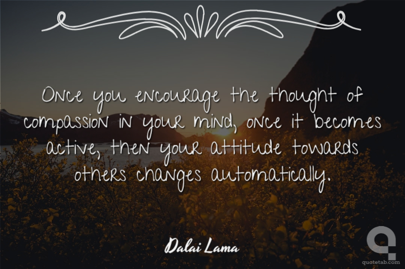 Once you encourage the thought of compassion in your mind, once it becomes active, then your attitude towards others changes automatically.