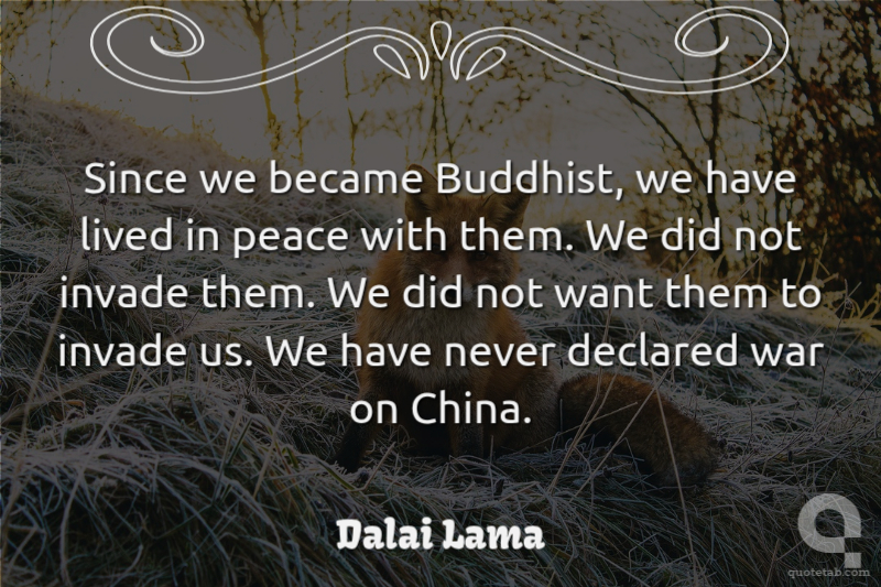 Since we became Buddhist, we have lived in peace with them. We did not invade them. We did not want them to invade us. We have never declared war on China.