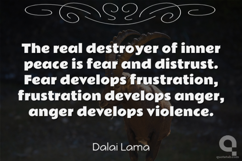 The real destroyer of inner peace is fear and distrust. Fear develops frustration, frustration develops anger, anger develops violence.
