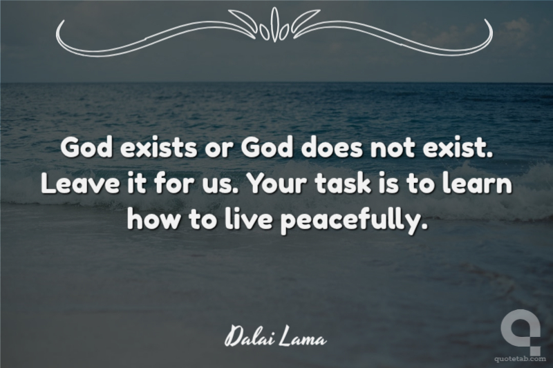 God exists or God does not exist. Leave it for us. Your task is to learn how to live peacefully.