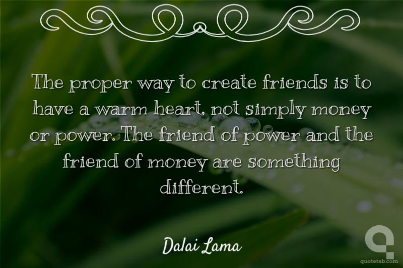 The proper way to create friends is to have a warm heart, not simply money or power. The friend of power and the friend of money are something different.