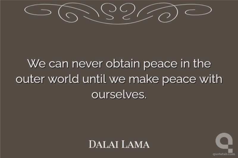 We can never obtain peace in the outer world until we make peace with ourselves.