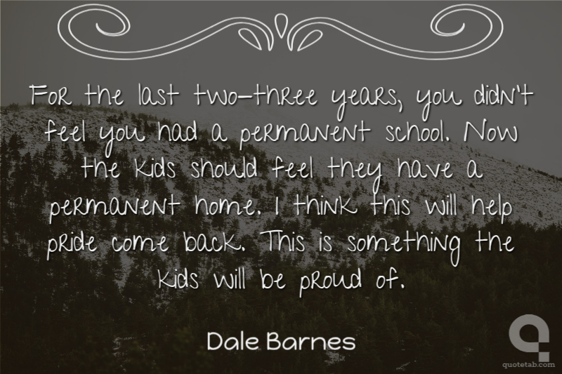 For the last two-three years, you didn't feel you had a permanent school. Now the kids should feel they have a permanent home. I think this will help pride come back. This is something the kids will be proud of.