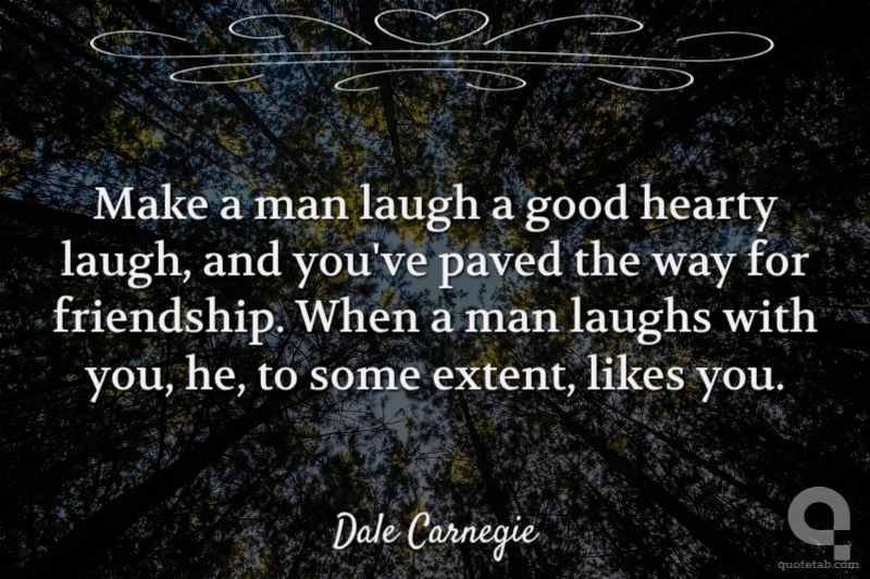 Make a man laugh a good hearty laugh, and you've paved the way for friendship. When a man laughs with you, he, to some extent, likes you.