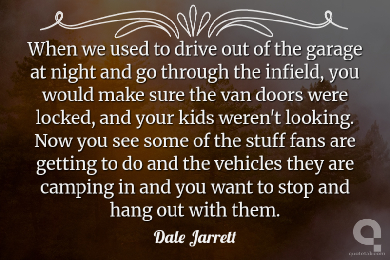 When we used to drive out of the garage at night and go through the infield, you would make sure the van doors were locked, and your kids weren't looking. Now you see some of the stuff fans are getting to do and the vehicles they are camping in and you want to stop and hang out with them.