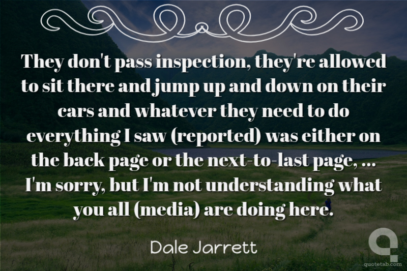 They don't pass inspection, they're allowed to sit there and jump up and down on their cars and whatever they need to do everything I saw (reported) was either on the back page or the next-to-last page, ... I'm sorry, but I'm not understanding what you all (media) are doing here.