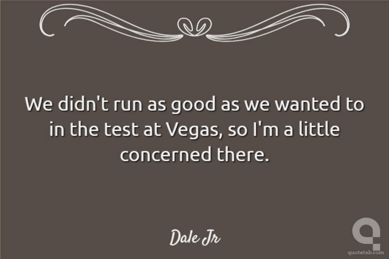 We didn't run as good as we wanted to in the test at Vegas, so I'm a little concerned there.