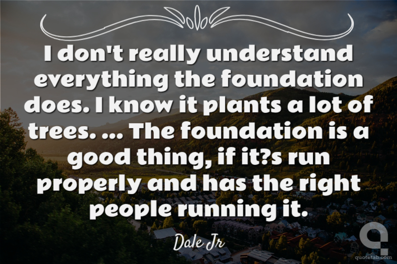 I don't really understand everything the foundation does. I know it plants a lot of trees. ... The foundation is a good thing, if it?s run properly and has the right people running it.