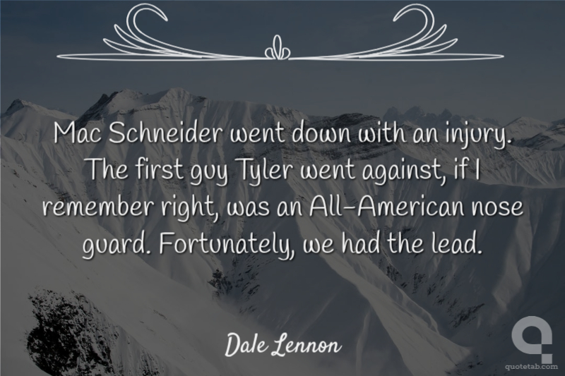 Mac Schneider went down with an injury. The first guy Tyler went against, if I remember right, was an All-American nose guard. Fortunately, we had the lead.