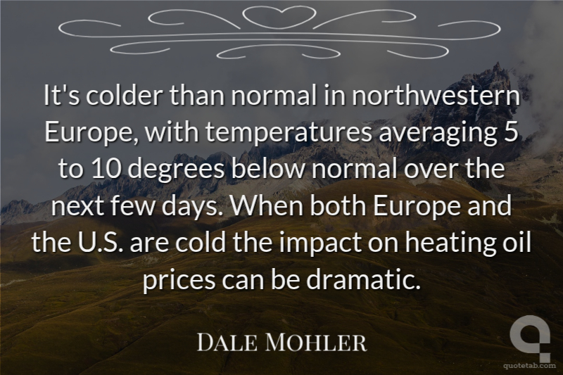 It's colder than normal in northwestern Europe, with temperatures averaging 5 to 10 degrees below normal over the next few days. When both Europe and the U.S. are cold the impact on heating oil prices can be dramatic.