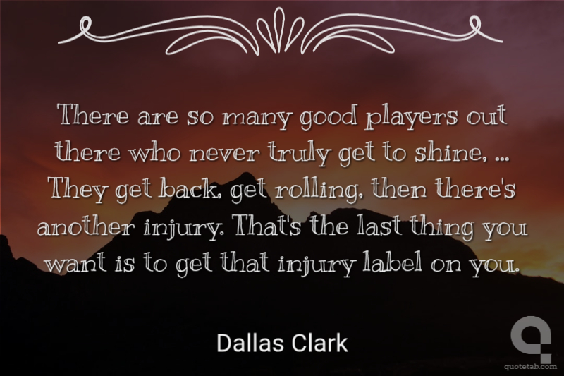 There are so many good players out there who never truly get to shine, ... They get back, get rolling, then there's another injury. That's the last thing you want is to get that injury label on you.
