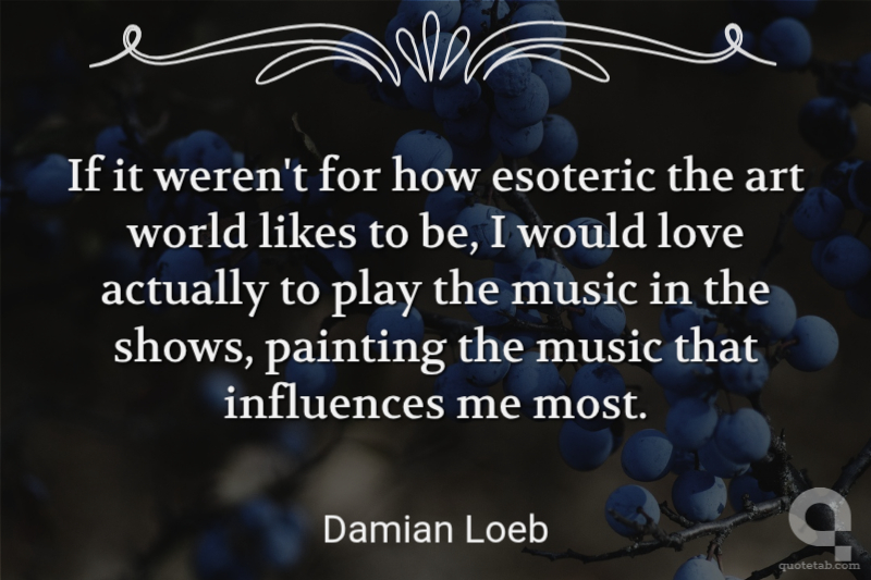 If it weren't for how esoteric the art world likes to be, I would love actually to play the music in the shows, painting the music that influences me most.
