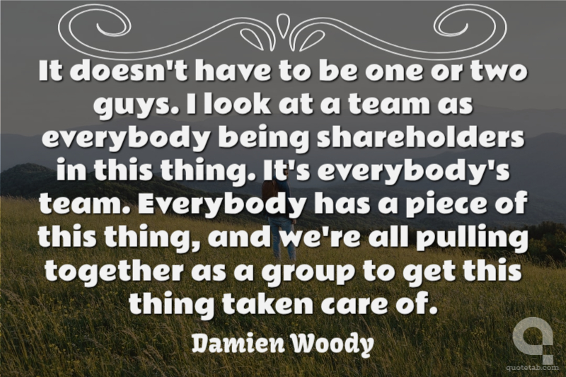 It doesn't have to be one or two guys. I look at a team as everybody being shareholders in this thing. It's everybody's team. Everybody has a piece of this thing, and we're all pulling together as a group to get this thing taken care of.