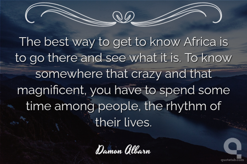 The best way to get to know Africa is to go there and see what it is. To know somewhere that crazy and that magnificent, you have to spend some time among people, the rhythm of their lives.