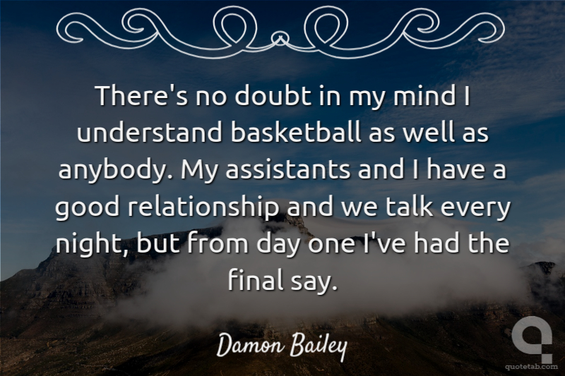 There's no doubt in my mind I understand basketball as well as anybody. My assistants and I have a good relationship and we talk every night, but from day one I've had the final say.