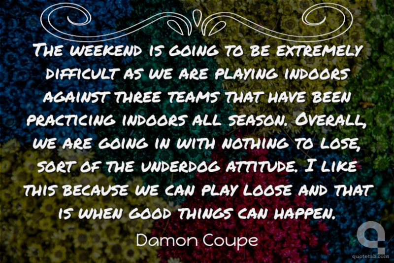 against difficult extremely good indoors loose playing practicing sort teams three underdog weekend