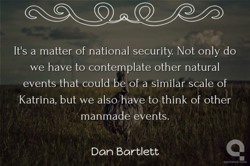 It's a matter of national security. Not only do we have to contemplate other natural events that could be of a similar scale of Katrina, but we also have to think of other manmade events.