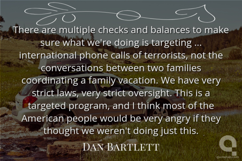 There are multiple checks and balances to make sure what we're doing is targeting ... international phone calls of terrorists, not the conversations between two families coordinating a family vacation. We have very strict laws, very strict oversight. This is a targeted program, and I think most of the American people would be very angry if they thought we weren't doing just this.