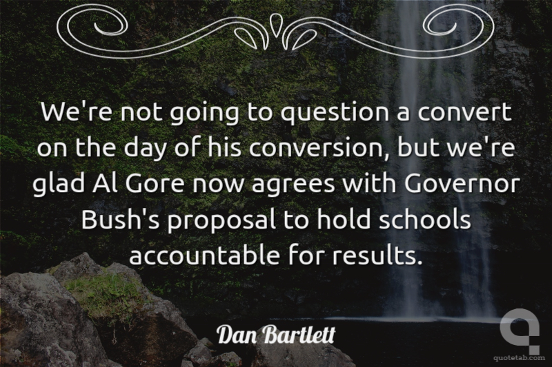 We're not going to question a convert on the day of his conversion, but we're glad Al Gore now agrees with Governor Bush's proposal to hold schools accountable for results.