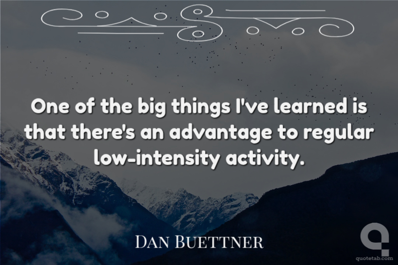 One of the big things I've learned is that there's an advantage to regular low-intensity activity.