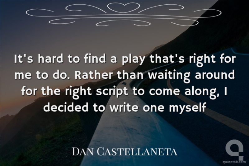 It's hard to find a play that's right for me to do. Rather than waiting around for the right script to come along, I decided to write one myself