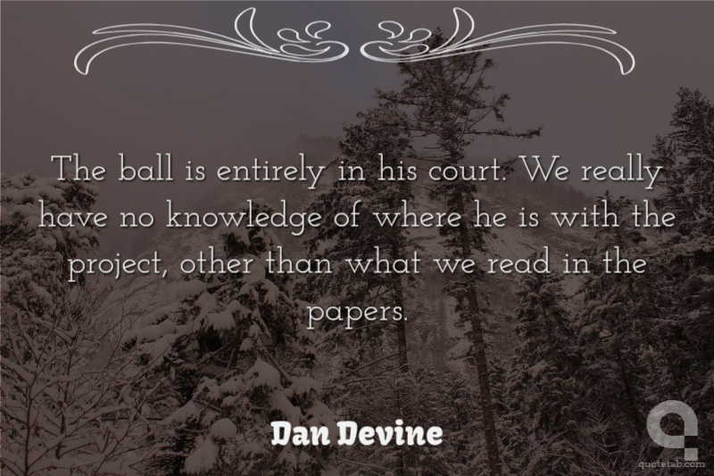 The ball is entirely in his court. We really have no knowledge of where he is with the project, other than what we read in the papers.