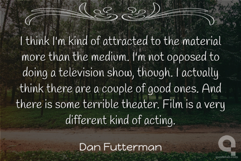 I think I'm kind of attracted to the material more than the medium. I'm not opposed to doing a television show, though. I actually think there are a couple of good ones. And there is some terrible theater. Film is a very different kind of acting.