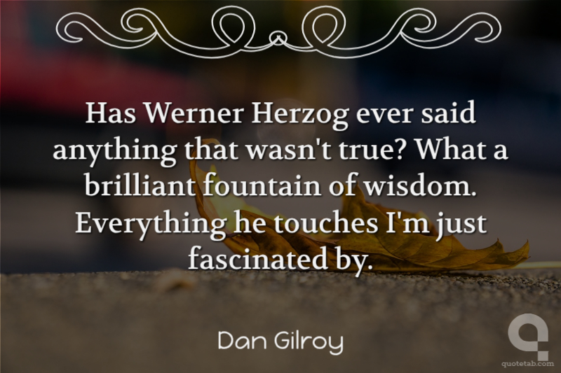 Has Werner Herzog ever said anything that wasn't true? What a brilliant fountain of wisdom. Everything he touches I'm just fascinated by.