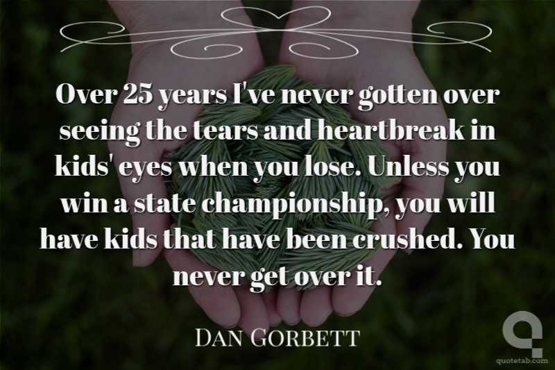 Over 25 years I've never gotten over seeing the tears and heartbreak in kids' eyes when you lose. Unless you win a state championship, you will have kids that have been crushed. You never get over it.