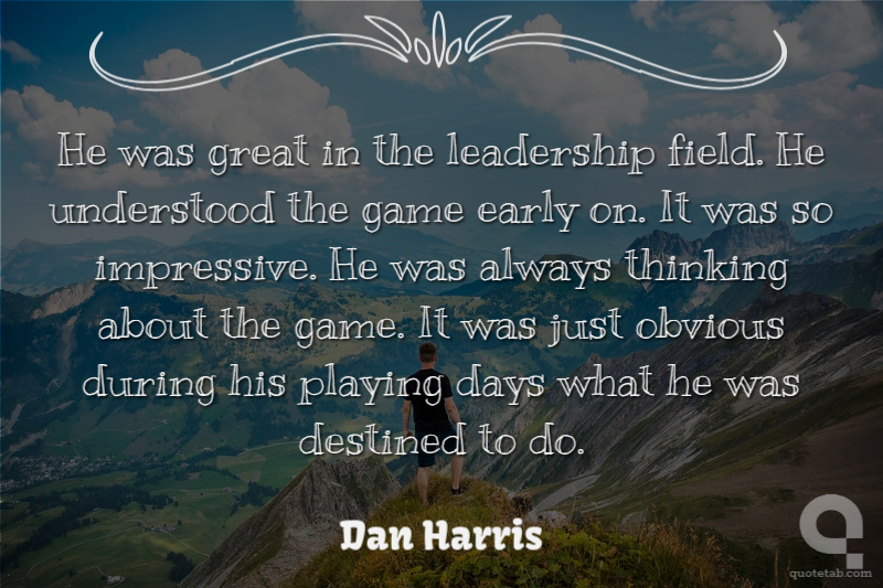 He was great in the leadership field. He understood the game early on. It was so impressive. He was always thinking about the game. It was just obvious during his playing days what he was destined to do.