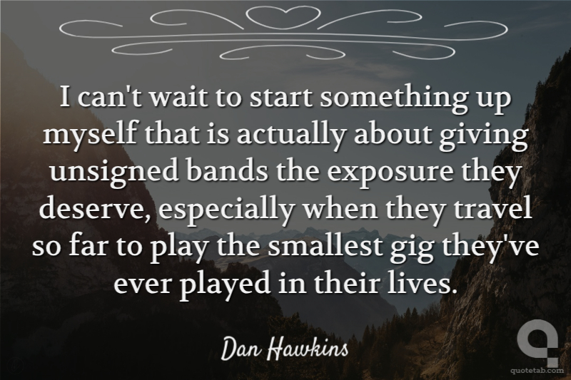 I can't wait to start something up myself that is actually about giving unsigned bands the exposure they deserve, especially when they travel so far to play the smallest gig they've ever played in their lives.