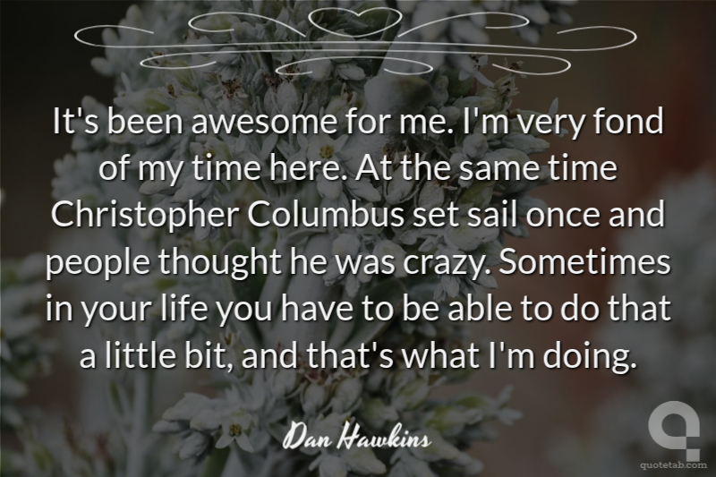 It's been awesome for me. I'm very fond of my time here. At the same time Christopher Columbus set sail once and people thought he was crazy. Sometimes in your life you have to be able to do that a little bit, and that's what I'm doing.