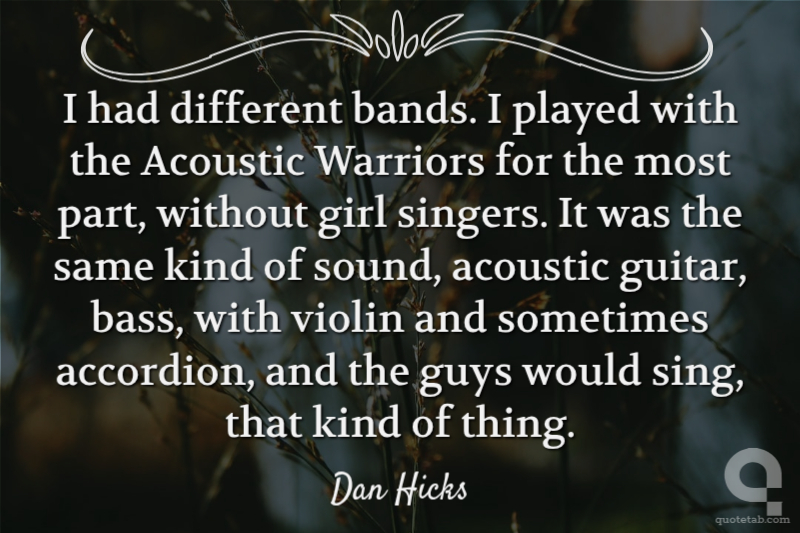 I had different bands. I played with the Acoustic Warriors for the most part, without girl singers. It was the same kind of sound, acoustic guitar, bass, with violin and sometimes accordion, and the guys would sing, that kind of thing.