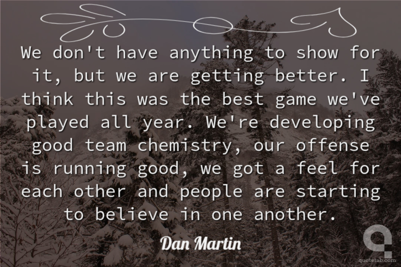 We don't have anything to show for it, but we are getting better. I think this was the best game we've played all year. We're developing good team chemistry, our offense is running good, we got a feel for each other and people are starting to believe in one another.