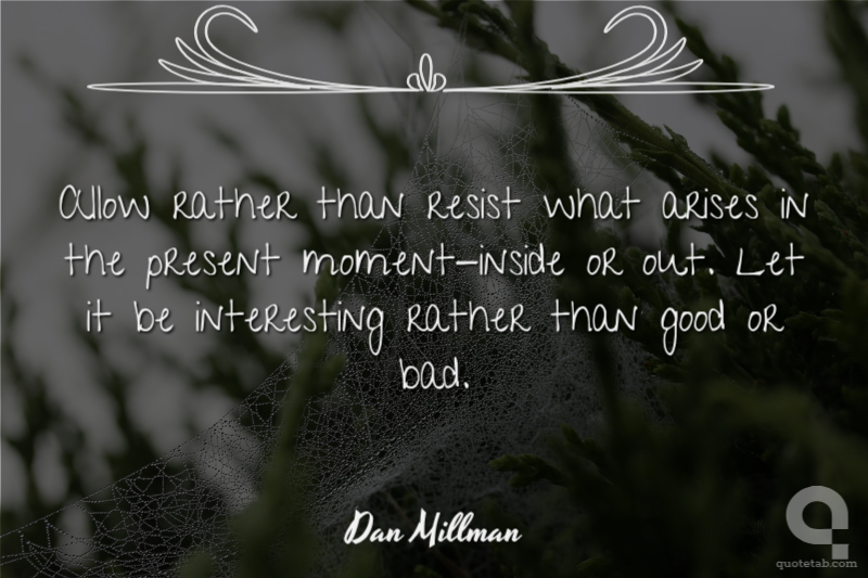 Allow rather than resist what arises in the present moment-inside or out. Let it be interesting rather than good or bad.