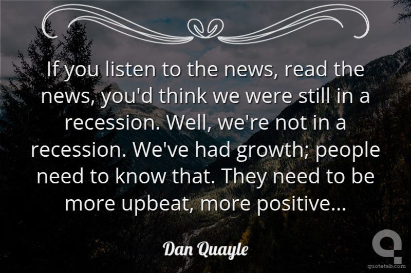 If you listen to the news, read the news, you'd think we were still in a recession. Well, we're not in a recession. We've had growth; people need to know that. They need to be more upbeat, more positive...