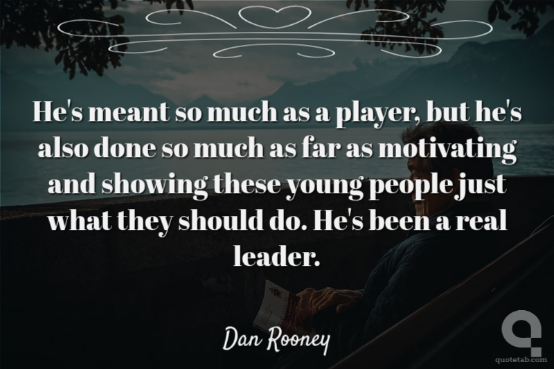He's meant so much as a player, but he's also done so much as far as motivating and showing these young people just what they should do. He's been a real leader.