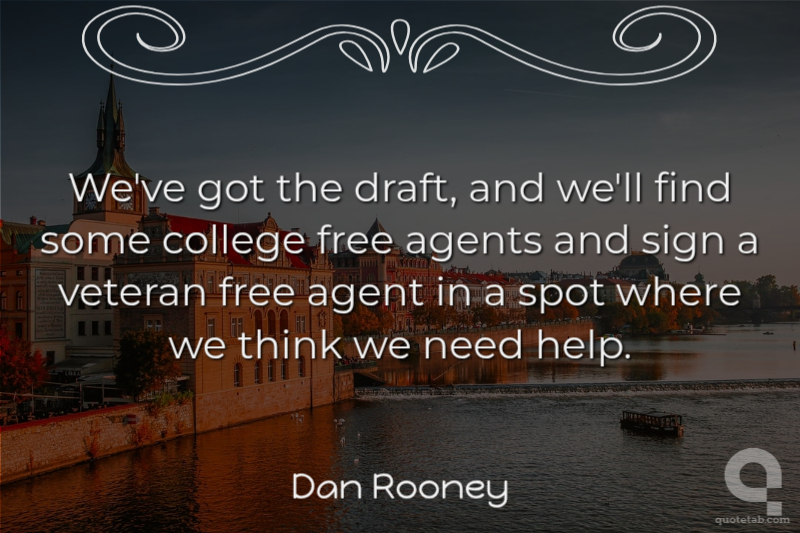 We've got the draft, and we'll find some college free agents and sign a veteran free agent in a spot where we think we need help.