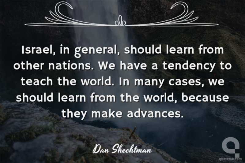 Israel, in general, should learn from other nations. We have a tendency to teach the world. In many cases, we should learn from the world, because they make advances.