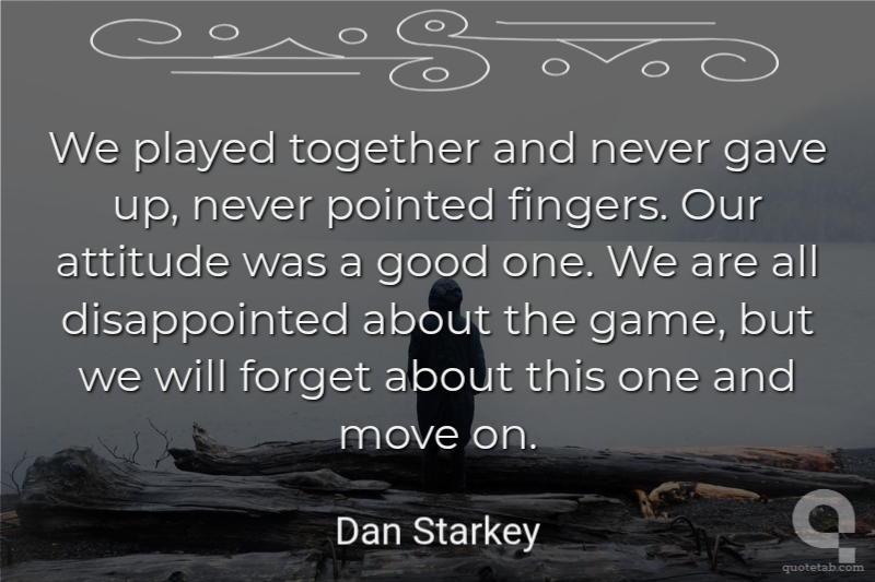 We played together and never gave up, never pointed fingers. Our attitude was a good one. We are all disappointed about the game, but we will forget about this one and move on.