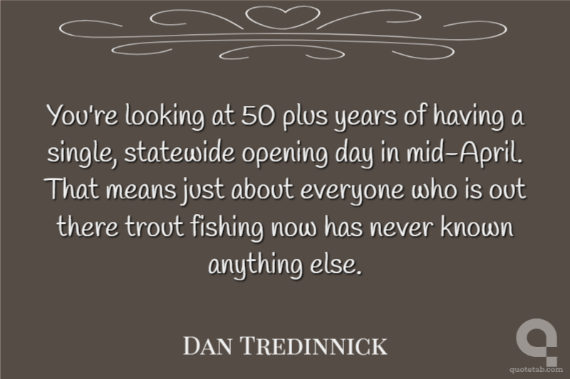 You're looking at 50 plus years of having a single, statewide opening day in mid-April. That means just about everyone who is out there trout fishing now has never known anything else.