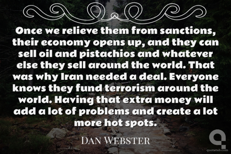 Once we relieve them from sanctions, their economy opens up, and they can sell oil and pistachios and whatever else they sell around the world. That was why Iran needed a deal. Everyone knows they fund terrorism around the world. Having that extra money will add a lot of problems and create a lot more hot spots.