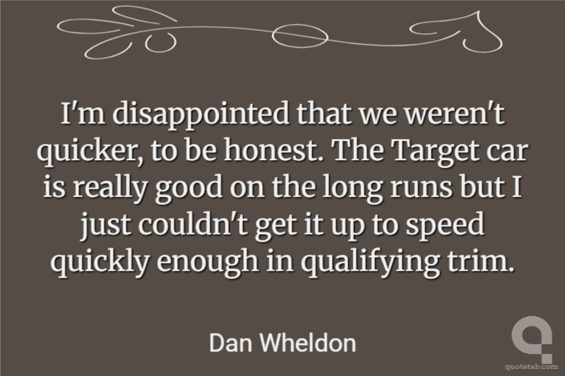I'm disappointed that we weren't quicker, to be honest. The Target car is really good on the long runs but I just couldn't get it up to speed quickly enough in qualifying trim.