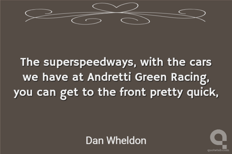 The superspeedways, with the cars we have at Andretti Green Racing, you can get to the front pretty quick,