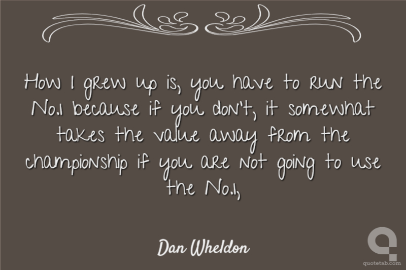 How I grew up is, you have to run the No.1 because if you don't, it somewhat takes the value away from the championship if you are not going to use the No.1,