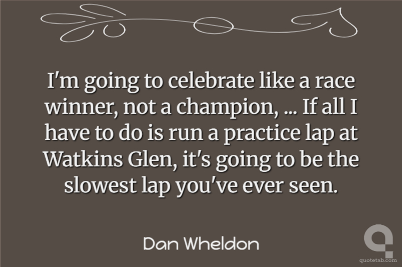 I'm going to celebrate like a race winner, not a champion, ... If all I have to do is run a practice lap at Watkins Glen, it's going to be the slowest lap you've ever seen.